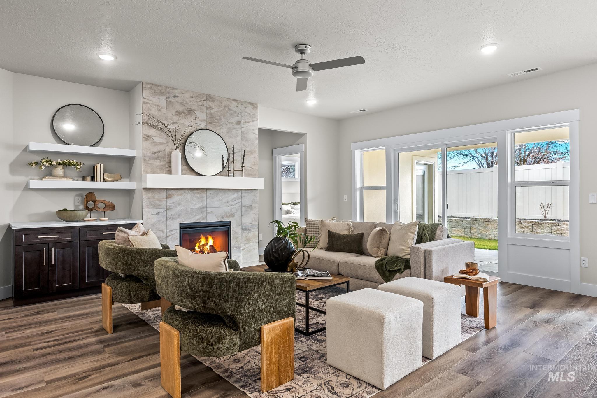 No backyard neighbors! Don't miss out on this price! Curtis Homes has done it again with this 3-bedroom, 2-bath home that offers modern style and comfort. The open kitchen features quartz countertops, a gas range, and vinyl plank flooring, perfect for entertaining. The light-filled living area includes a cozy fireplace, built-in cabinetry, and large windows.